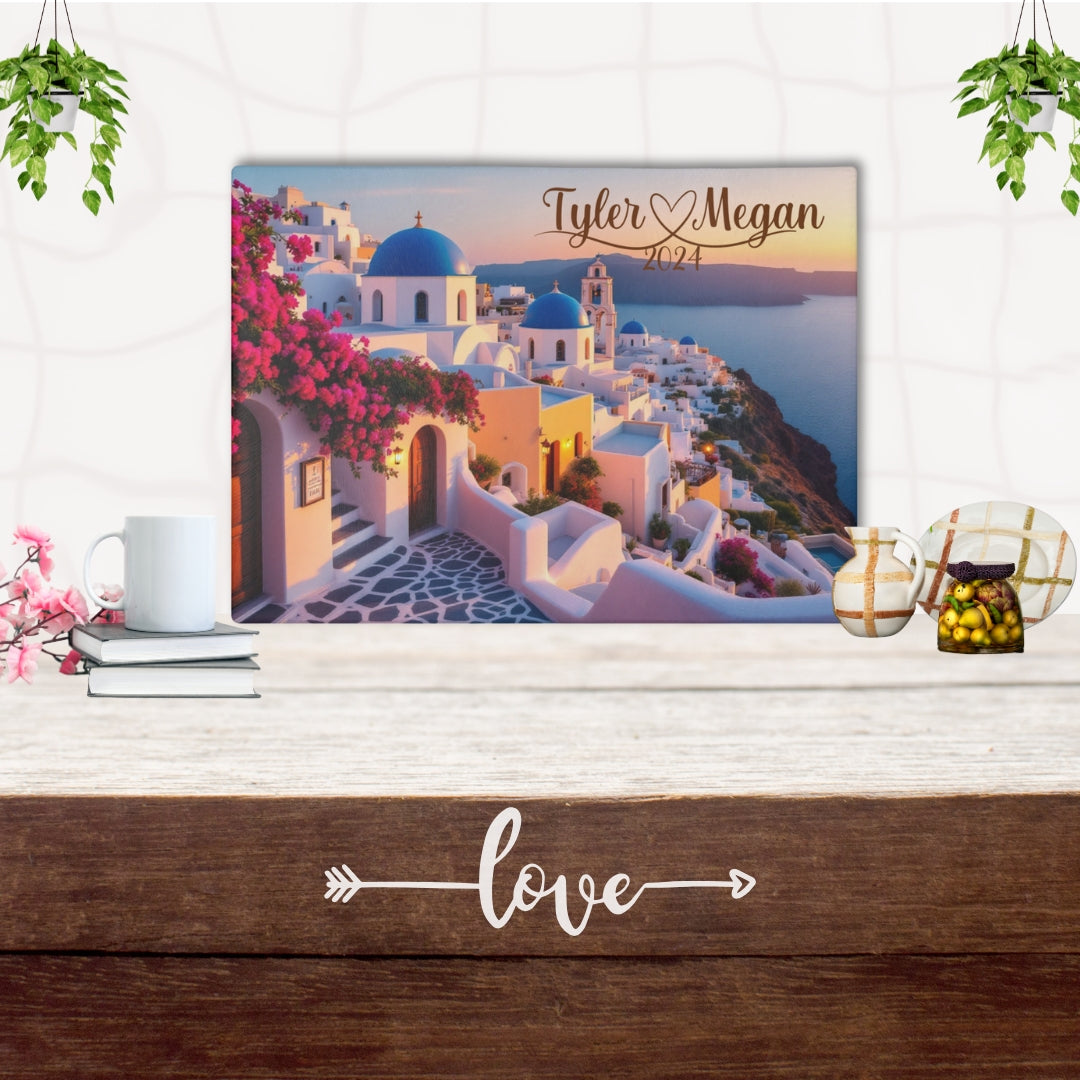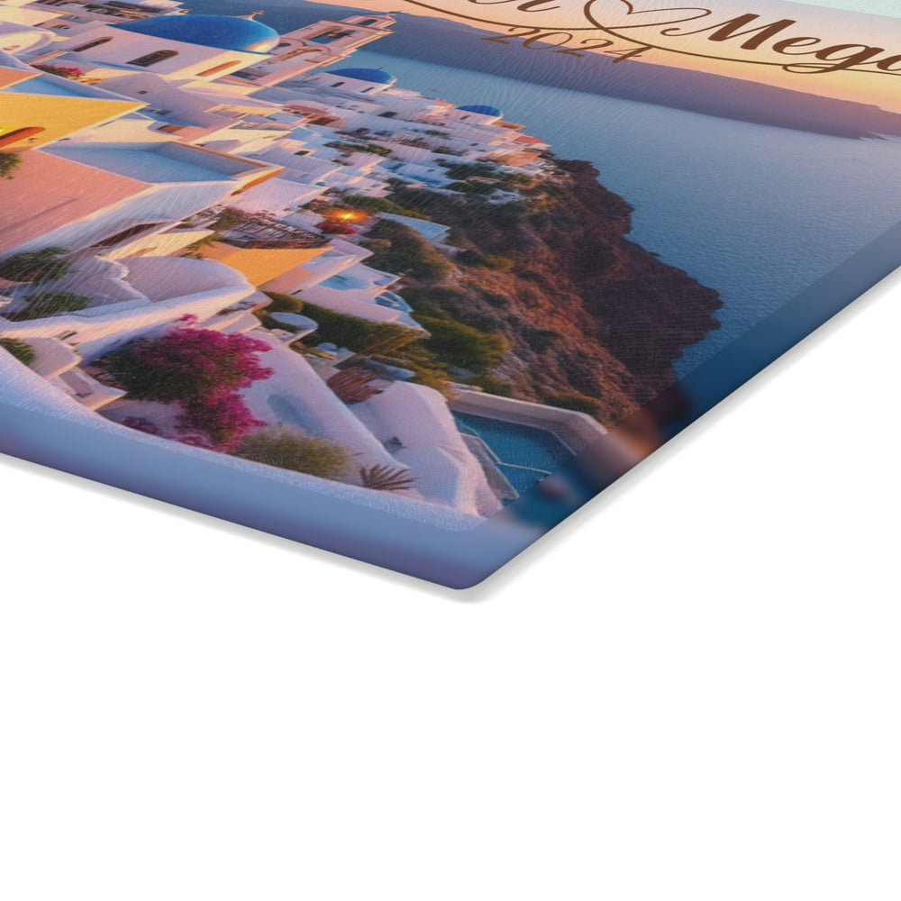 Custom Glass Cutting Board, Santorini Kitchen Decor, Custom Couples Gift