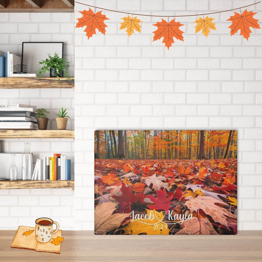 Custom Glass Cutting Board, Autumn Leaves Design, Couple Gifts