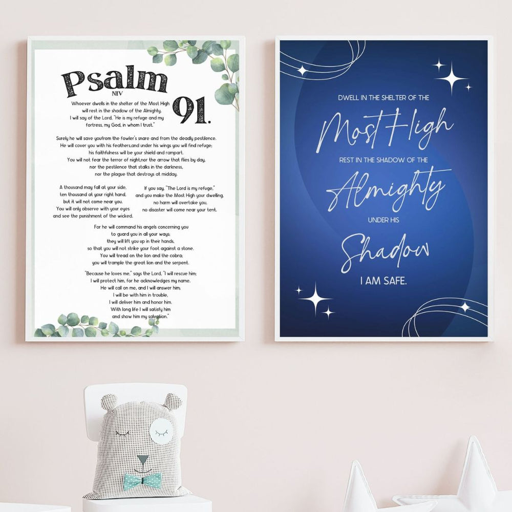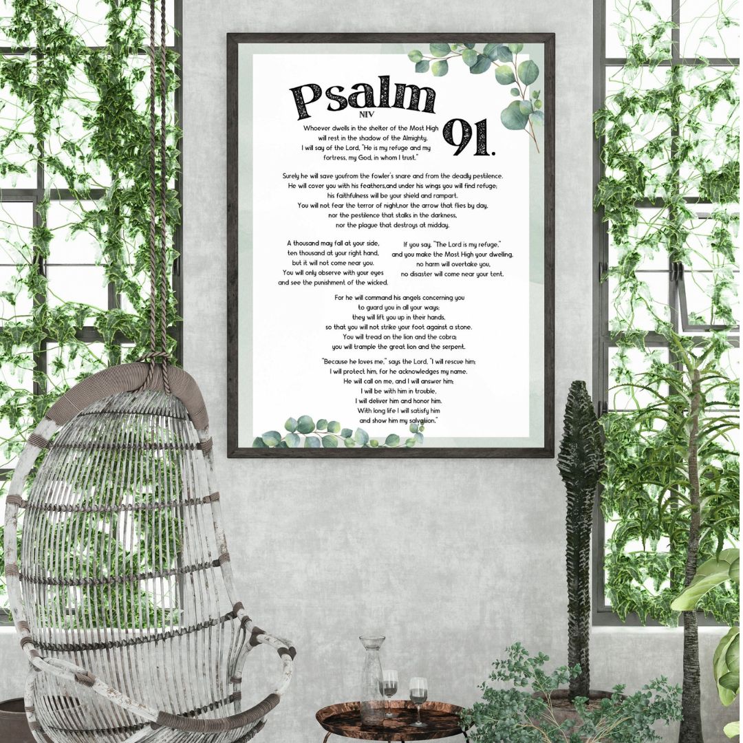 Psalm 91 Bible Verse Wall Art, Wall Art Digital Download, Christian Wall Art,