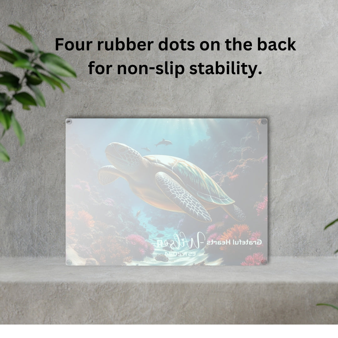 Personalized Cutting Board, "Grateful Hearts" Sea Turtle Glass Cutting Board, Family Name Gifts