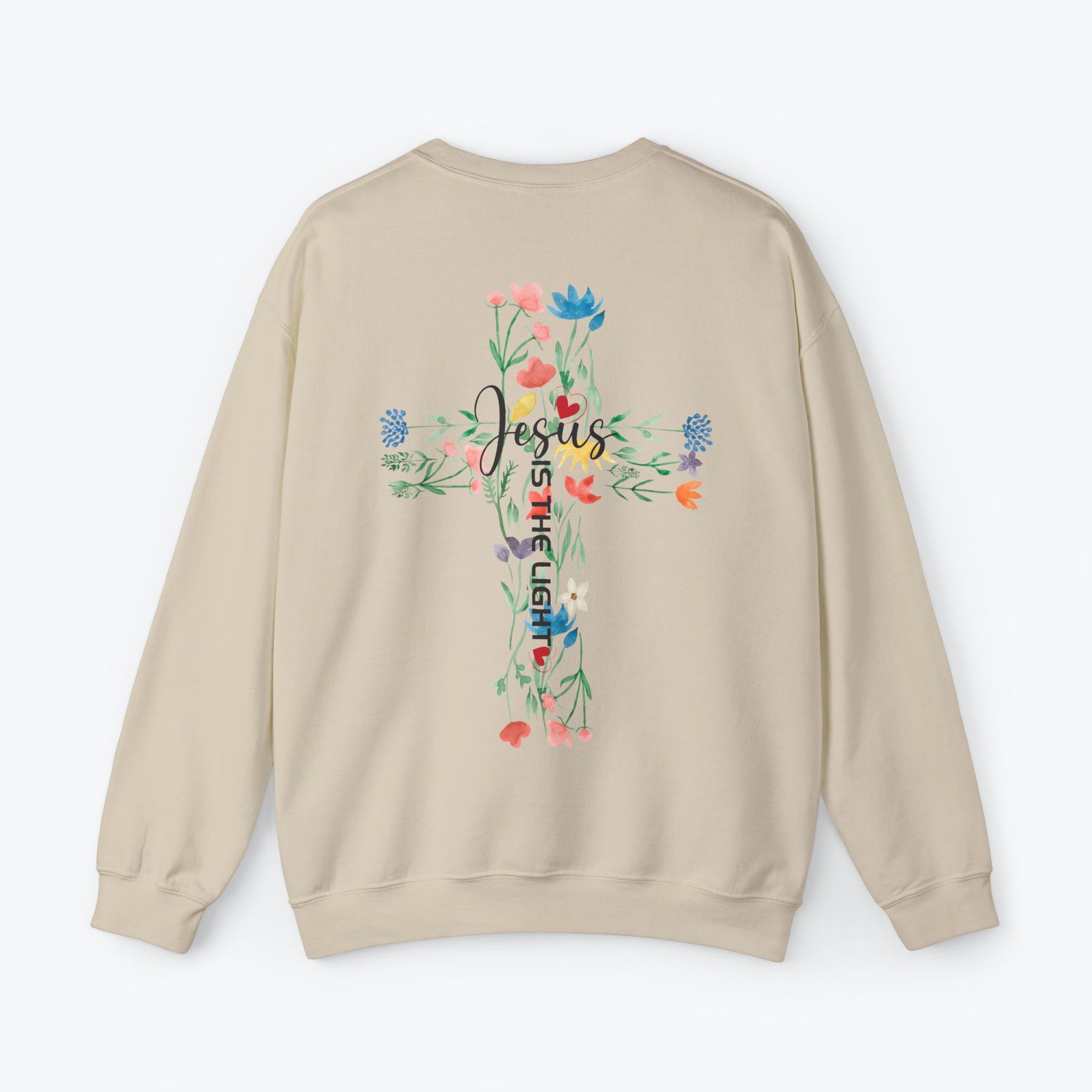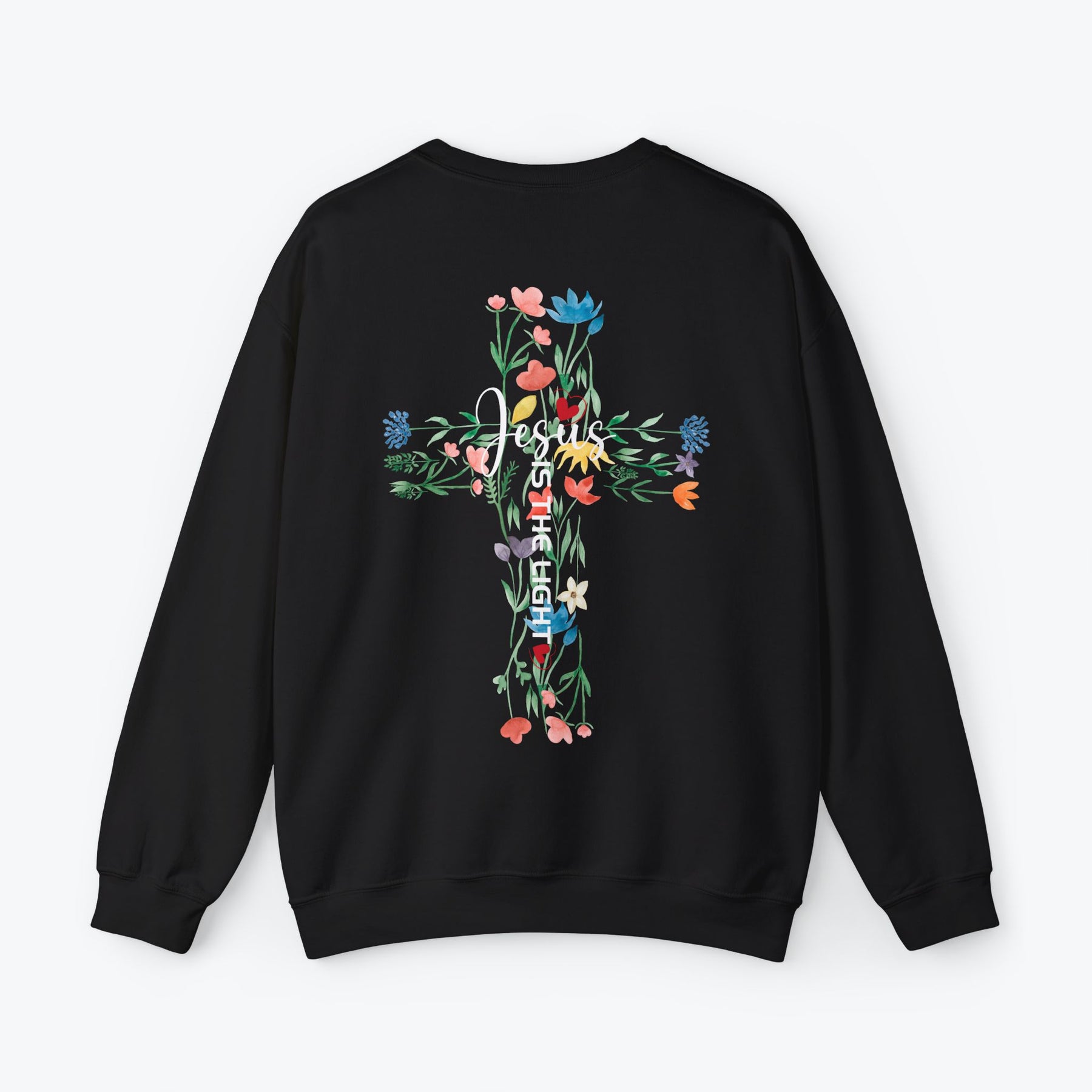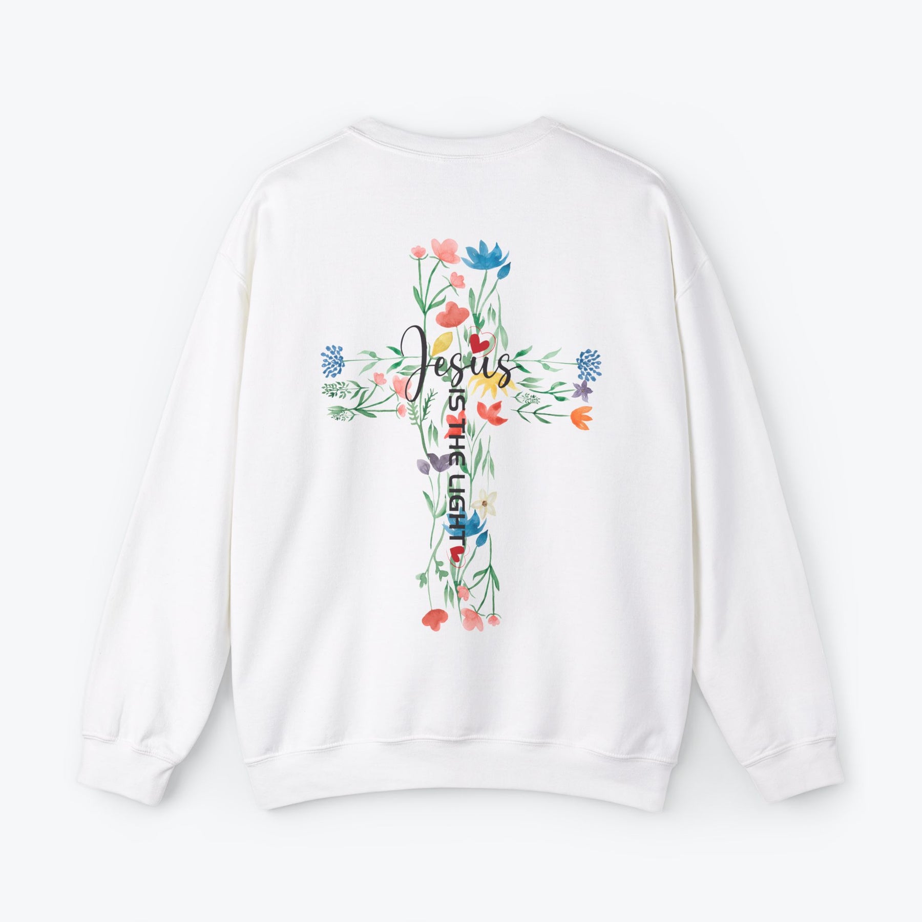 Embrace your faith in style with this "Jesus is the Light" sweatshirt, beautifully printed with a minimalist design on the front pocket and a vibrant floral cross on the back. Made for comfort and inspiration, this trendy Christian sweatshirt is available in 7 different colors to suit your personal style. Perfect as a faith-filled gift for loved ones or a meaningful addition to your wardrobe. Great for pairing with jeans or layering for all seasons.